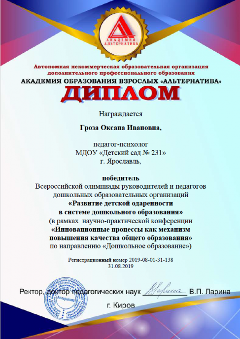 | 1 | III Международный фестиваль работников образования "Профессиональный успех" | Международный | январь 2019 | Домогатская Л.В. | Диплом |