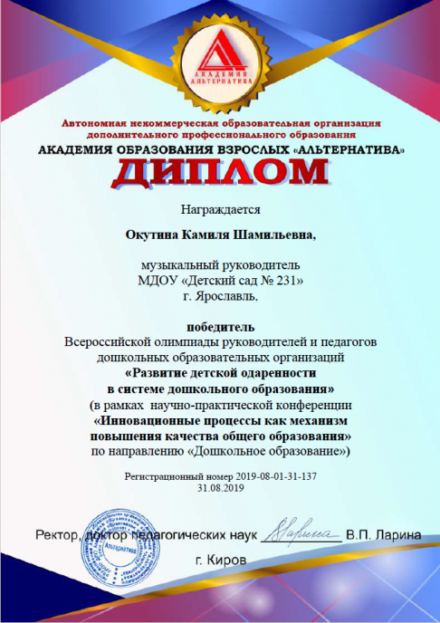 | 2 | вебинар ""Игровые методики по развитию чувства ритма у детей дошкольного возраста | вебинар | 24.01.2019 | Оккутина К.Ш. | Сертификат |